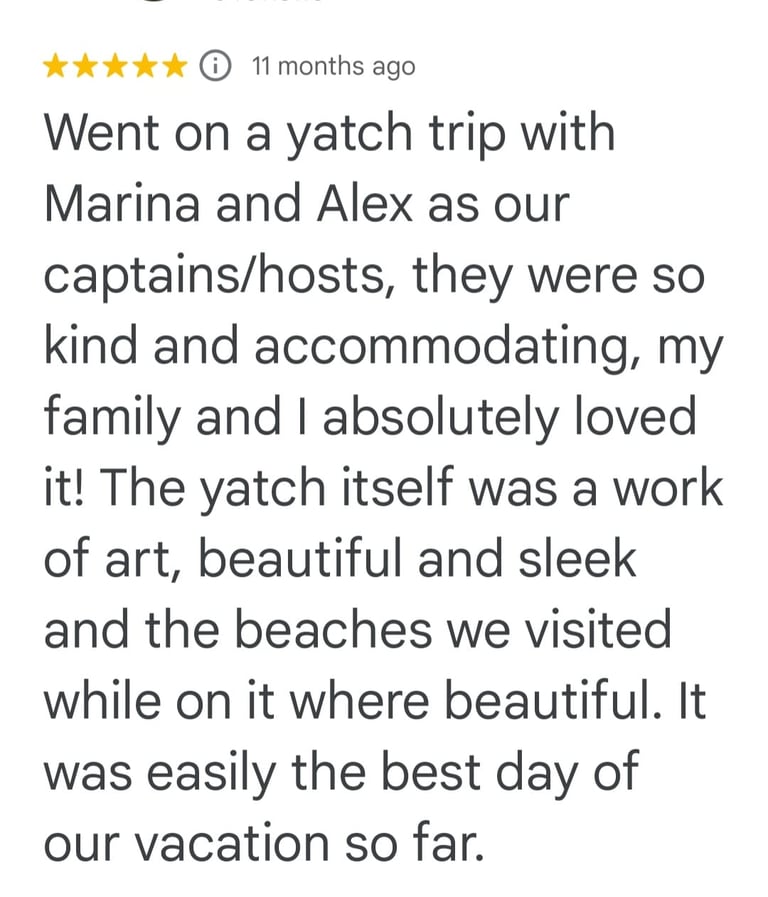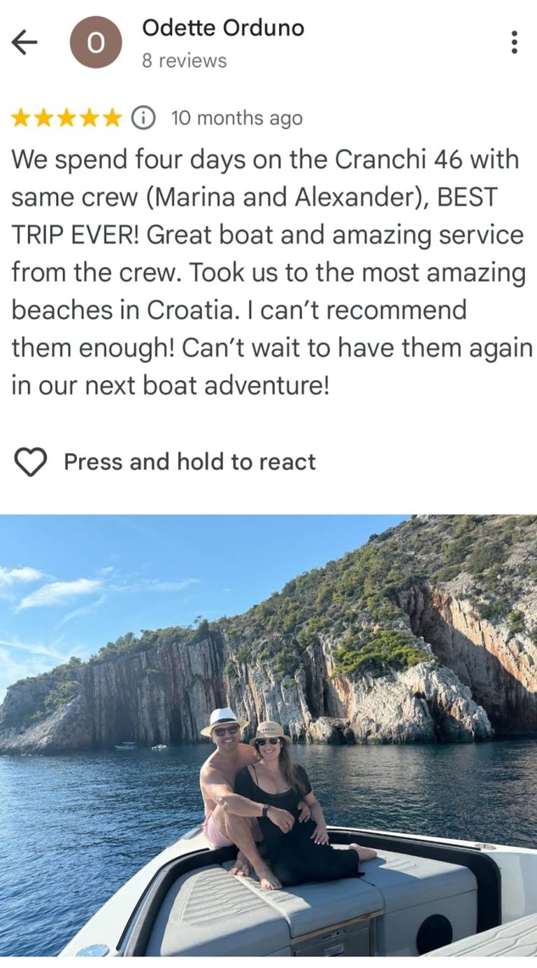 Aleksandar and Marina made our day on the water unforgettable—warm, attentive, and truly skilled.